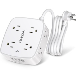 6 Ft Surge Protector Power Strip – 8 Widely Outlets with 4 USB Ports, 3 Side Outlet Extender with 6 Feet Extension Cord, Flat Plug, Wall Mount, Desk USB Charging Station, ETL,White