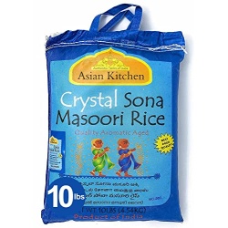 Asian Kitchen Crystal Sona Masoori Aged Rice 10-Pound Bag, 10lbs (4.54kg) Short Grain Rice ~ All Natural | Gluten Friendly | Vegan | Indian Origin | Export Quality