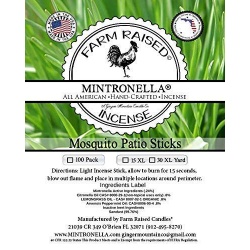 Mintronella Mosquito Patio Sticks/Natural – U.S.A Made 100 Pack. / No See Ums – Gnats – Fly Stick/Outdoor Incense Bug Sticks. Citronella Plant Oil + Peppermint – Lavender – Pool – Camping – Patio.