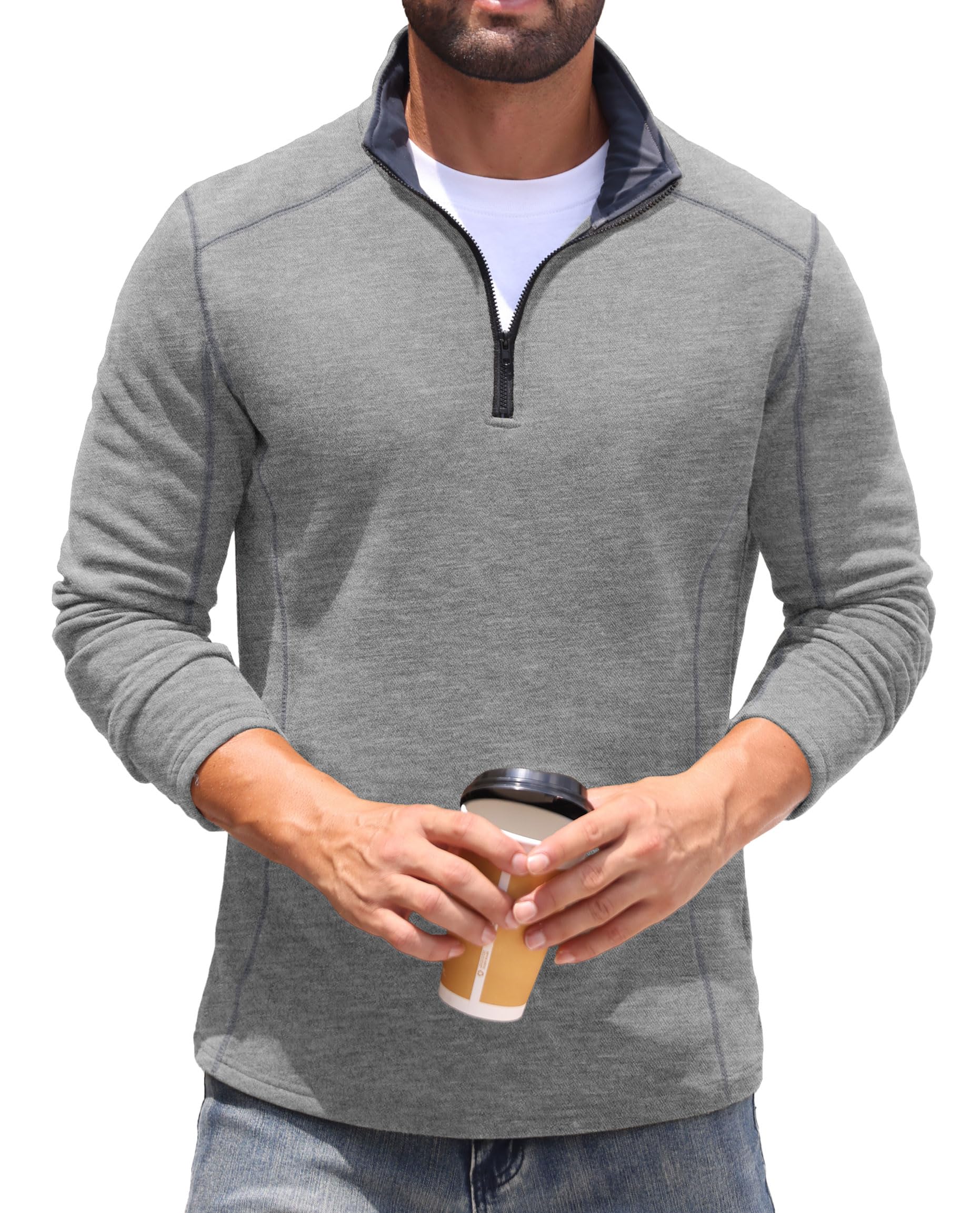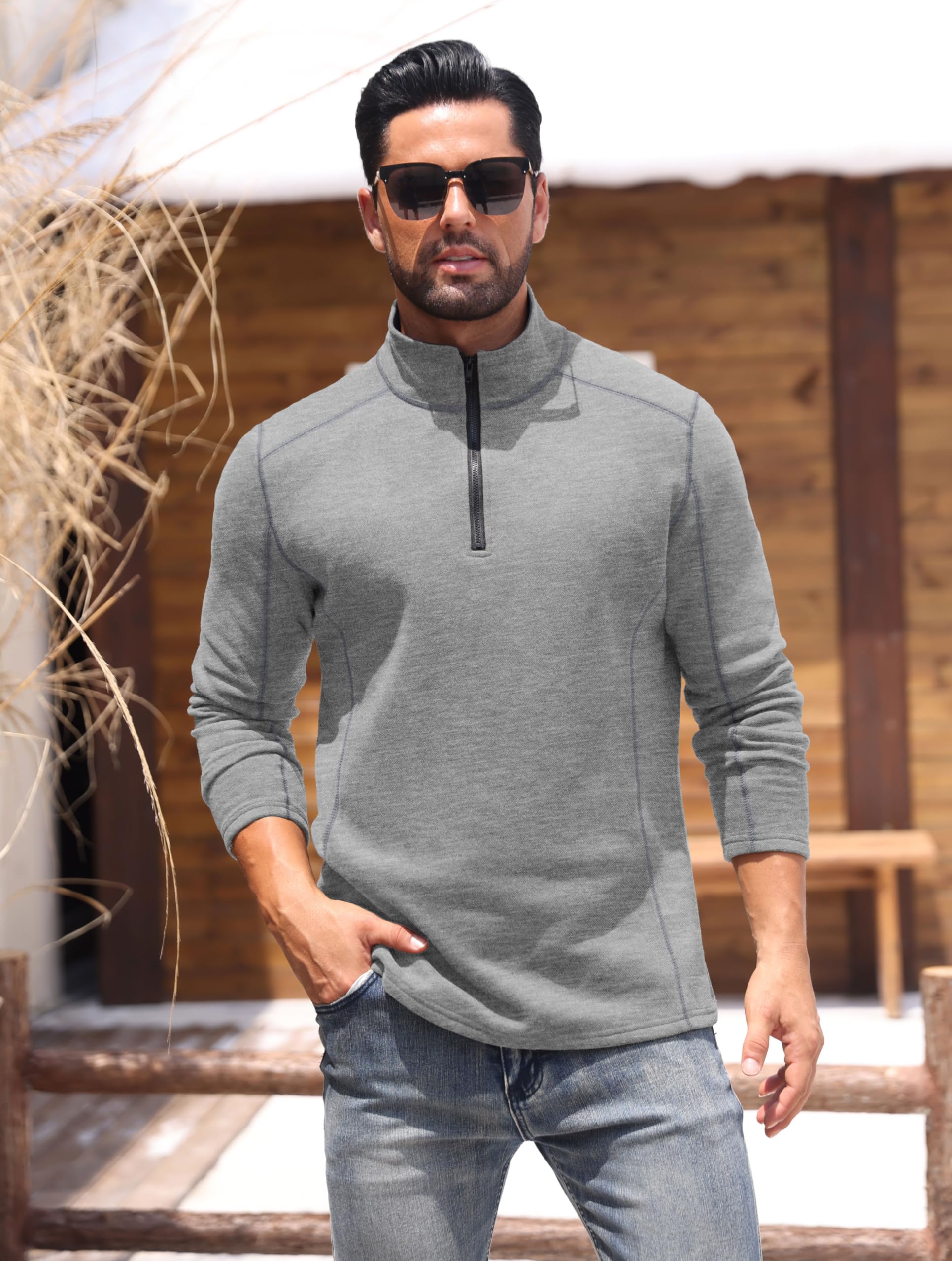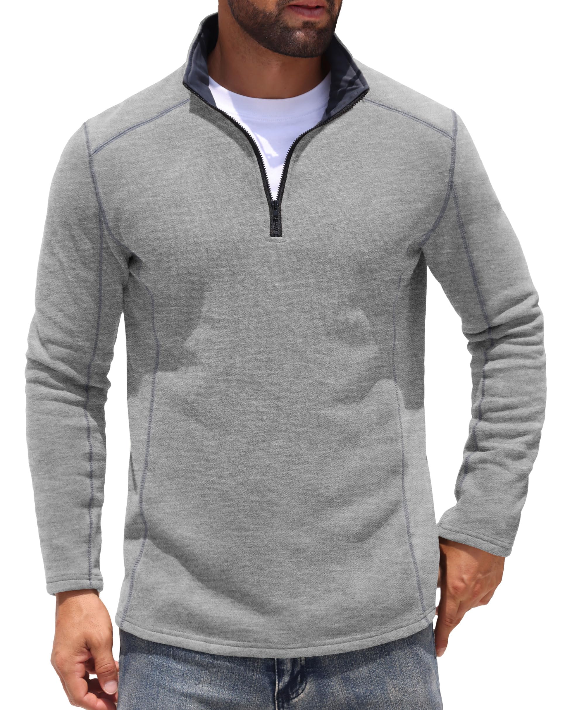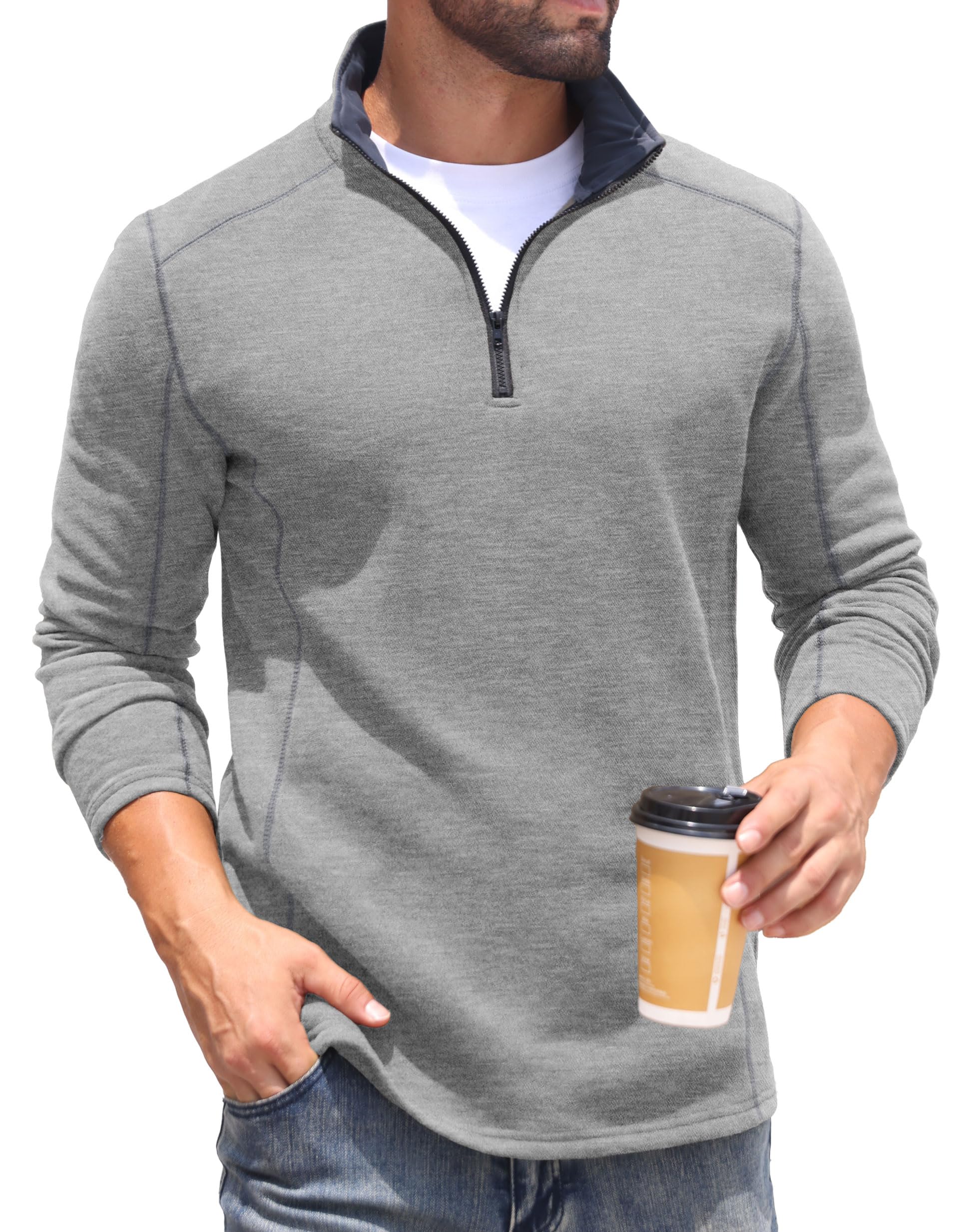 Sailwind Mens Quarter Zip Sweatshirt Fleece Long Sleeve Pullover Casual Mock Neck Polo Sweater Light Gray